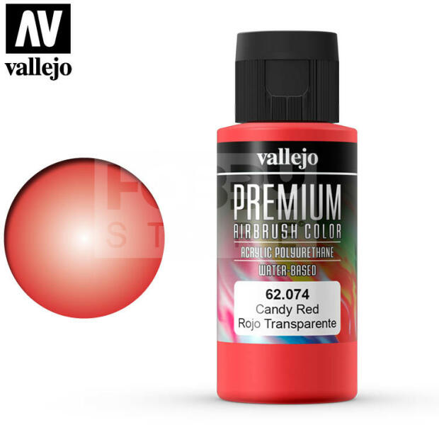Vallejo Premium RC Colors Candy Red akrilfesték (60 ml) 62074V A Vallejo Premium RC sorozatot kifejezetten airbrush (szórópisztoly) használathoz lettek kifejlesztve. Tulajdonságának fő erőssége, hogy optimális tapadást biztosítsanak üvegszál, polietilén, polikarbonát, fém és lexan felületeken. A Premium RC sorozat speciális tartós pigmentekkel és egy új rendkívül ellenáll
