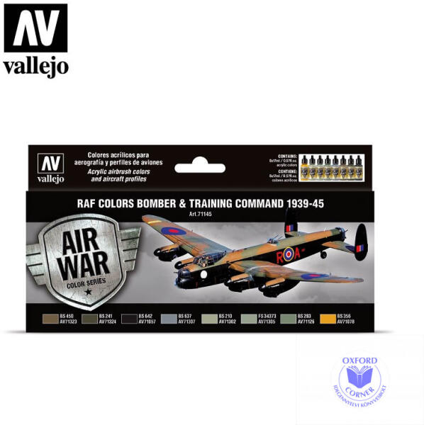 8db légibombázó színeit tartalmazó festékkészlet Bomber Air Command & Training Air Command 1939-45 Paint set, Vallejo, 8 x 17 ml