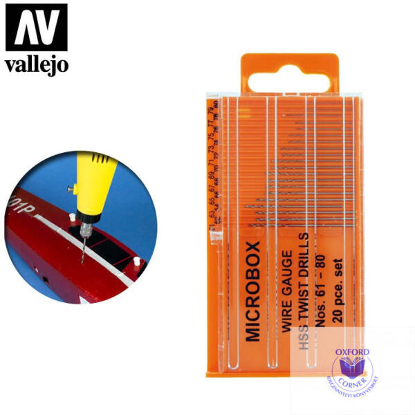 20 fúrószár US inch számozással, műanyag tokban. Microbox drill set 61-80, Vallejo