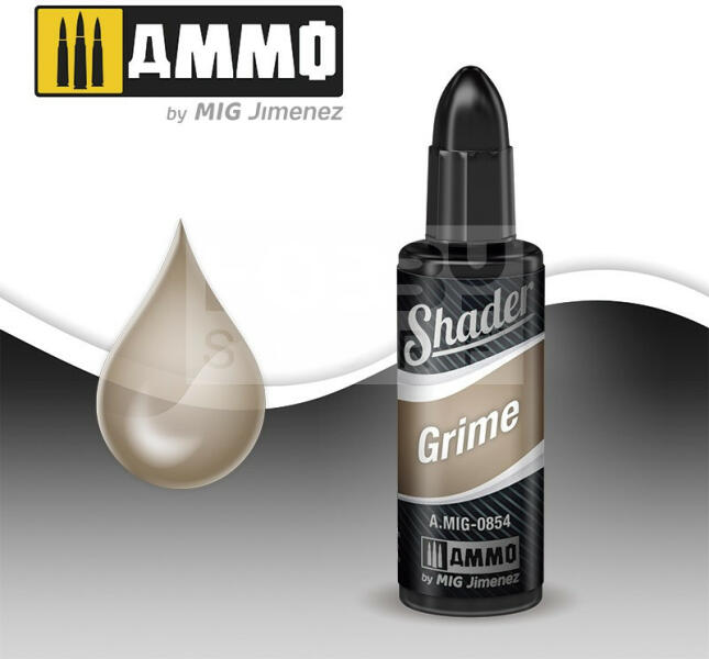 AMMO By Mig - GRIME SHADER - Akril árnyékoló - koszoló folyadék makettezőknek 10ml - AMIG0854 Az Ammo Shaders egy teljesen új típusú termék makettezőknek. Különböző effektek létrehozására szolgál maketteken. Az átlátszó és ultrafinom festék lehetővé teszi kezdő és haladó makettezőknek egyaránt, hogy lenyűgözően élethű hatásokat érjen el amik korábban lehetetl