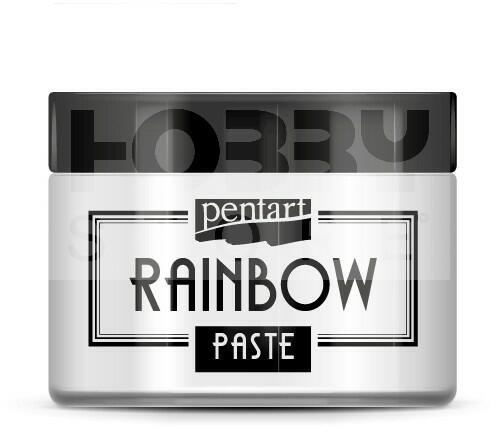Pentart Szivárvány paszta opál 150 ml 34329 Rugalmas, átlátszóra vagy opálosra száradó vízbázisú paszta, melyből kicsillannak a jeges hatást idéző holografi kus pigmentek. A látvány különbözik világos illetve sötét felületen, de mindenképp lenyűgöző. Bármilyen felületre felvihető, kiválóan stencilezhető is. Termék neveSzivárvány paszta- Rainbow pasteFelhaszná