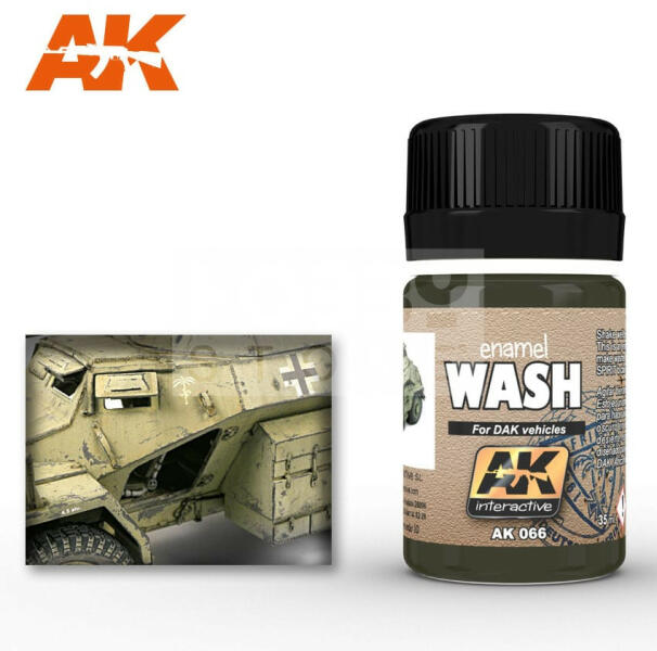 AK-Interactive AFRICA KORPS WASH 35 ml AK066 Enamel alapú általános bemosó-átmosó folyadék, mely nagyon sok színhez felhasználható a fémesektől elkezdve a kékeken és a sárgákon át a pirosakig. Alap technika a makettesek és wargamesek számára. Az Ak Interactive bemosók kiválóan alkalmasak a makettek, figurák árnyékolásra. Mivel rendkívül hígak így a legapróbb mélyed