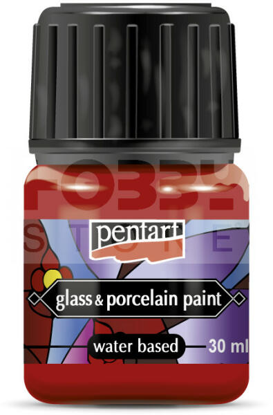 Pentart Üveg és porcelánfesték piros 30 ml 21337 Fényes, átlátszó vagy fedő, vízbázisú festék üveg-, porcelán- és fémfelületek díszítéséhez. A színek egymással jól keverhetők, világosításukhoz Pentart üveg&porcelánfesték médiumot használjunk. Ügyeljünk arra, hogy a díszítendő felület zsír- és pormentes legyen. Fényes, vízbázisú festék üveg-, porc