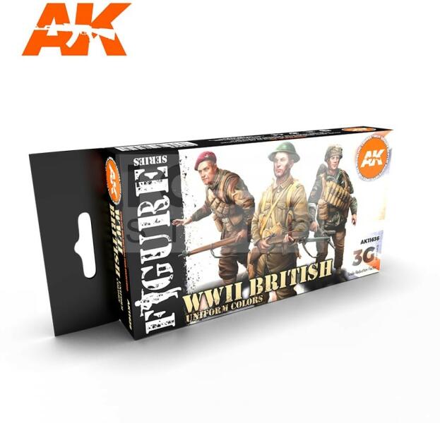 AK Interactive WWII BRITISH UNIFORM COLORS festékszett AK11636 Tematikus festékszett 6 darab AK Interactive 3. generációs festékkel . Új formulával rendelkező magas fedőképességű festék mely kiválóan alkalmas festékszóróval és ecsettel való használatra egyaránt. Speciális összetevőinek köszönhetően nem tömődik el festékszórónk, és felrázás után azonnal használ