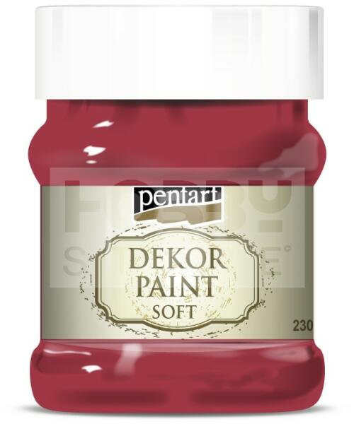 Pentart Dekorfesték lágy (chalky) kardinálpiros 230 ml 21656 Kiváló fedőképességű, gyorsan száradó, vízbázisú festék. Különleges összetételének köszönhetően matt, lágy tapintású, sima felületet kapunk, ami könnyen csiszolható. Szinte bármilyen anyagra, így fára, kerámiára, fémre, kőre, sőt falfelületre is használható. Kiválóan alkalmas kopott, antik hatás