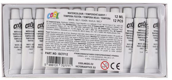 -fehér színű temperafesték tubusban -kiváló minőség, jó festhetőség és keverhetőség -12 ml/tubus Gyártó/első EU forgalmazó elérhetősége: Corwell Kft 2120 Dunakeszi, Pallag utca 37. cool@cool4kids. eu https://victoriaoffice. eu/termekek/cool-by-victoria