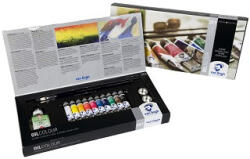 Van Gogh oil olajfestékek - Combi set 10 x 20 ml Tartalom: 10 cső 20 ml (105 - Titan. white, 268 - Azo yellow light, 270 - Azo yellow deep, 393 - Azo red medium, 366 - Quinacridone rose, 504 - Ultramarine, 535 - Cerulean bl. (phthalo), 619 - Permanent green deep, 409 - Burnt umber, 701 - Ivory black) 1 üveg festőközeg 75 ml 2 Van Gogh ecset sorozata - 210 sz. 8 (Gussow modell) - 211 sz. 4 (ke
