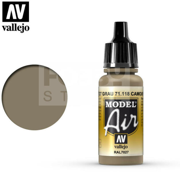 Vallejo Model Air Camouflage Gray akrilfesték 71118V A Vallejo Model Air széria mattra száradó akrilfesték airbrush (szórópisztoly) használathoz lett kifejlesztve. A színválaszték a közelmúltban használt katonai színek legteljesebb választékát tartalmazza, beleértve az I. és a II. világháborút valamint a napjainkban használt színeket is. Mindegyik Model Air szín a meglév