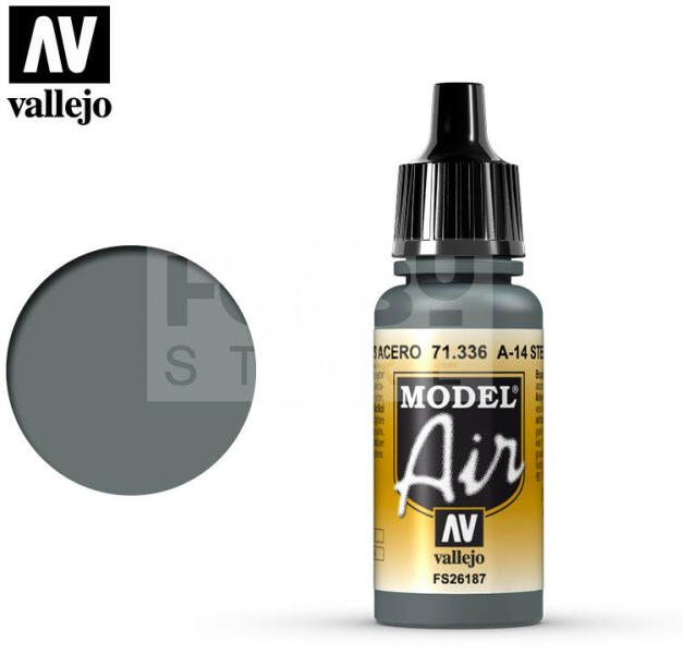 Vallejo Model Air A-14 Steel Grey akrilfesték 71336V A Vallejo Model Air széria mattra száradó akrilfesték airbrush (szórópisztoly) használathoz lett kifejlesztve. A színválaszték a közelmúltban használt katonai színek legteljesebb választékát tartalmazza, beleértve az I. és a II. világháborút valamint a napjainkban használt színeket is. Mindegyik Model Air szín a meglév