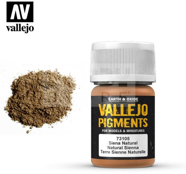Vallejo Natural Sienna Pigment (pigment por) 35 ml 73105V A Vallejo Pigmentek kiváló fényállóságú extra finomra őrölt természetes ásványi és szintetikus termékek. Ezen tulajdonságaik megkönnyítik a maketteken és diorámákon való alkalmazásukat. A Vallejo pigmentek egy sor olyan színt tartalmaz amivel könnyedén jeleníthetjük meg a járművekre és épületekre lerakódott