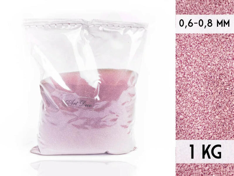Dekor homok mikro szemcsésKiszerelés: 1 kgSzín: halvány rózsaszín Dekor homok mikro szemcsés halvány rózsaszínNagyon szép. élénk színű, finom szemcséjű homok, mely kiváló alapanyag dekorációs célra, homoköntő ceremóniához, homokkép készítéséhez.