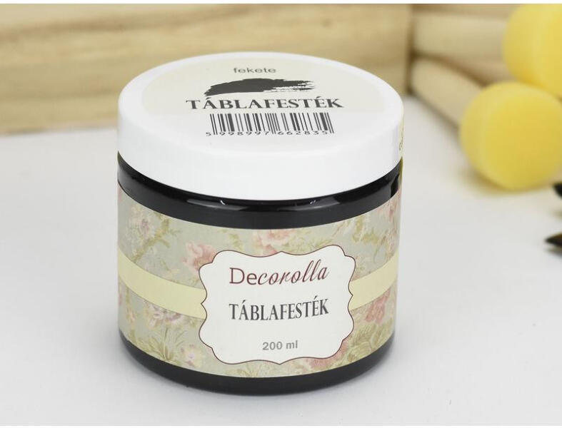 Táblafesték. Fára, falra, papírra, feszített vászonra alkalmazható, vízbázisú festék. A lefestett felületre krétával írhatunk, a feliratot vizes ruhával letörölhetjük. A lecsiszolt, portalanított felületet széles ecsettel vagy szivacshengerrel fessük le. Méret:200ml