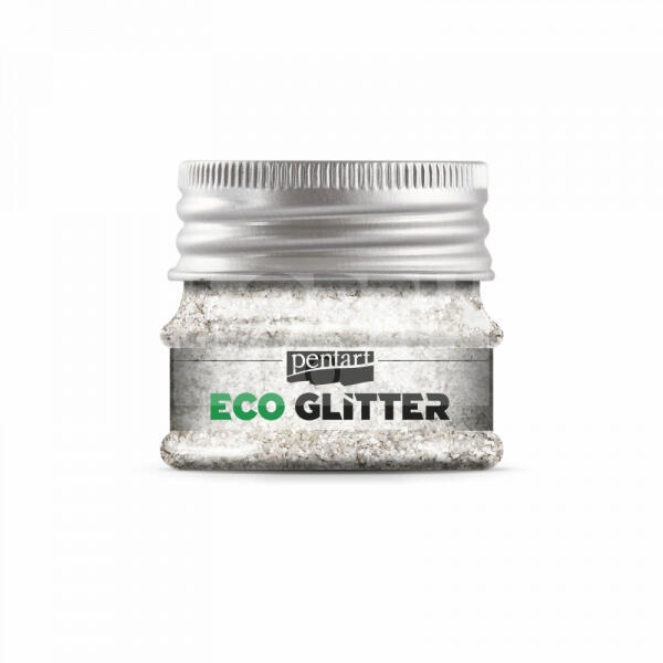 Pentart ECO glitter - ezüst - durva 15 gr - 41123 Természetes, csillámpala kőzetőrleményből készült glitter, mely nem tartalmaz műanyagot. Ezüst és rózsaarany színekben és különféle szemcseméretekben elérhető. Kifejezetten elegáns, finom csillogást biztosít. Szórhatjuk öntapadóra száradó ragasztóra (tacky glue), vagy keverhetjük lakkokba, gélekbe és gyantába Kisze