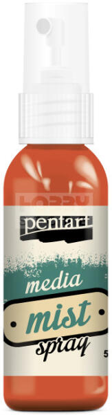 Pentart Média permetfesték spray tűzliliom 50 ml 22616 Gyorsan száradó, vízbázisú, savmentes festék, mely bármilyen felületre kifújható. Porózus felületen matt hatású, sima felületen fényesre szárad. Csillogó metálos színekben is kapható. Jól használható stencilezéshez. Kiváló gazdag színvilágú, egyedi, scrapbook-lapok készítéséhez. A színek összhangban vanna