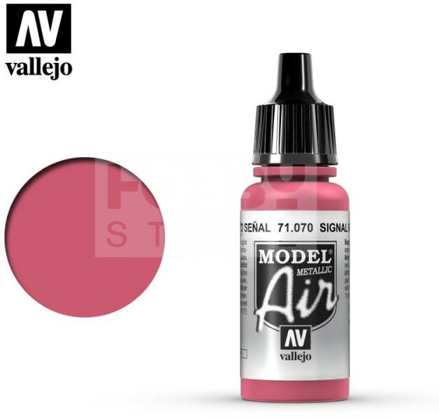 Vallejo Model Air Signal Red akrilfesték 71070V A Vallejo Model Air széria mattra száradó akrilfesték airbrush (szórópisztoly) használathoz lett kifejlesztve. A színválaszték a közelmúltban használt katonai színek legteljesebb választékát tartalmazza, beleértve az I. és a II. világháborút valamint a napjainkban használt színeket is. Mindegyik Model Air szín a meglévő é