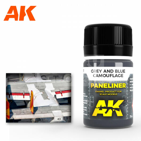 AK-Interactive PANELINER FOR GREY AND BLUE CAMOUFLAGE 35 ml AK2072 Panelvonal kiemelő folyadék szürke és kék festésű járművekhez. Enamel alapú általános bemosó-átmosó effect folyadék, mely nagyon sokrétűen használható. Alap technika a makettesek és wargamesek számára. Az Ak Interactive effekt bemosók kiválóan alkalmasak a makettek, figurák koszolására élethű lerakod