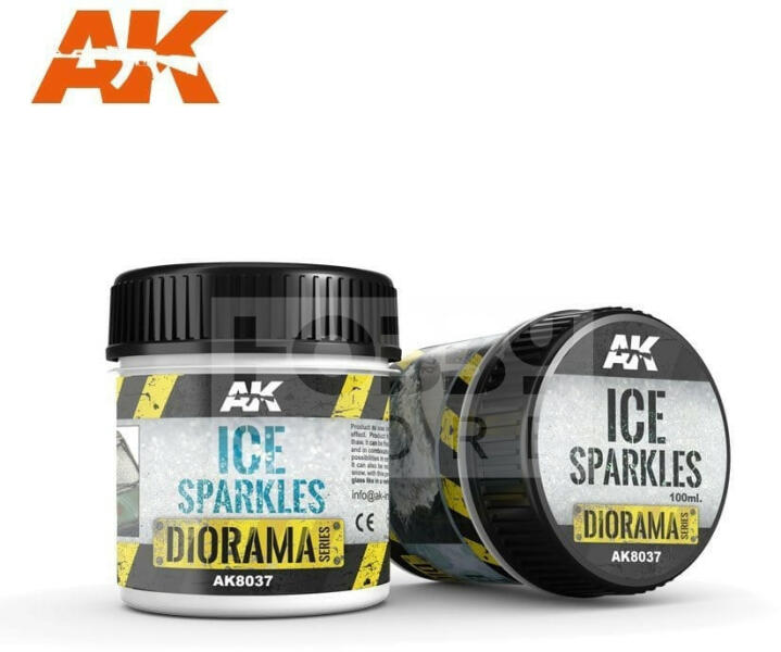 AK-Interactive ICE SPARKLES (jéghatású textúra) 100 ml AK8037 Jéghatású felületeket tudunk létrehozni vele könnyedén. Vízzel hígítható és ecsettel vékony vagy vastag rétegben is felhordható. Az AK-Interactive dioráma textúrái a piac legszélesebb szortimenttel rendelkező termékei melyekkel könnyedén jeleníthetünk meg talaj, víz, városi vagy egyéb alapokat, legyen ak