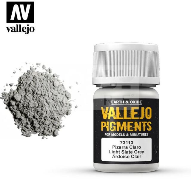 Vallejo Light Slate Grey Pigment (világosszürke színű pigment por) 35 ml 73113V Világosszürke pigmentpor makettek koszolásához. A Vallejo Pigmentek kiváló fényállóságú extra finomra őrölt természetes ásványi és szintetikus termékek. Ezen tulajdonságaik megkönnyítik a maketteken és diorámákon való alkalmazásukat. A Vallejo pigmentek egy sor olyan színt tartalmaz amive