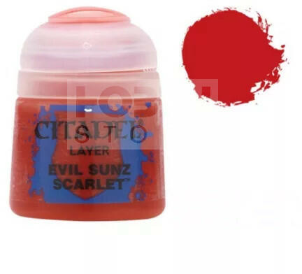 Citadel Colour Layer - Evil Sunz Scarlet 12 ml akrilfesték 22-05 A Citadel Layer akrilfestékek a Citadel festékcsalád legnépesebb tagja, több mint 90 féle árnyalat áll rendelkezésünkre. Alkalmazása elsősorban a Citadel Base festékrétegre javasolják hígabb állaga miatt. A Citadel Layer festékeket a modellek részleteinek kidolgozására használják, mivel akár több réteg is e