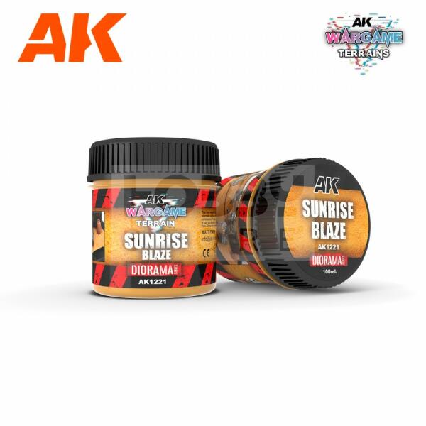 AK-Interactive Wargame Terrains - SUNRISE BLAZE paszta diorámához-figurákhoz AK1221 Az AK-Interactive Wargame Terrains termékei kifejezetten Wargame játékosok és figurások szerelmeseinek lettek kifejlesztve. Felhordható a tégelyből közvetlenül és vízzel való hígítás után is. Száradás után rendkívül ellenálló lesz. Az AK-Interactive dioráma textúrái a piac legszéleseb