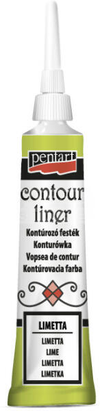 Pentart Kontúrozó festék csillogó limetta 20 ml 14114 Univerzális, vízbázisú, sűrű festék, mely bármely felületen alkalmazható minták körvonalainak körberajzolására, kiemelésére vagy 3D díszítések készítésére. Üvegfestéshez is kiváló! Száradás után vízálló és mosogatógépben mosható. Csillogó színek. Termék neveKontúrozó festék, csillogó - Contour li