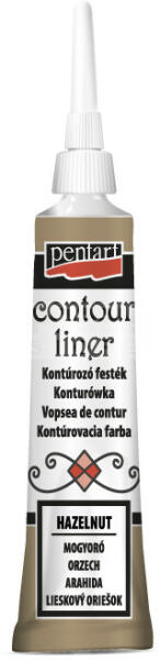 Pentart Kontúrozó festék csillogó mogyoró 20 ml 14120 Univerzális, vízbázisú, sűrű festék, mely bármely felületen alkalmazható minták körvonalainak körberajzolására, kiemelésére vagy 3D díszítések készítésére. Üvegfestéshez is kiváló! Száradás után vízálló és mosogatógépben mosható. Csillogó színek. Termék neveKontúrozó festék, csillogó - Contour l