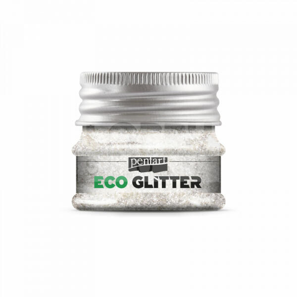Pentart ECO glitter - ezüst - extra finom 15 gr - 41122 Természetes, csillámpala kőzetőrleményből készült glitter, mely nem tartalmaz műanyagot. Ezüst és rózsaarany színekben és különféle szemcseméretekben elérhető. Kifejezetten elegáns, finom csillogást biztosít. Szórhatjuk öntapadóra száradó ragasztóra (tacky glue), vagy keverhetjük lakkokba, gélekbe és gyantába