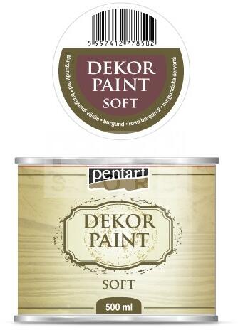 Pentart Dekorfesték lágy (chalky) burgundi vörös 500 ml 22722 Kiváló fedőképességű, gyorsan száradó, vízbázisú festék. Különleges összetételének köszönhetően matt, lágy tapintású, sima felületet kapunk, ami könnyen csiszolható. Szinte bármilyen anyagra, így fára, kerámiára, fémre, kőre, sőt falfelületre is használható. Kiválóan alkalmas kopott, antik hat