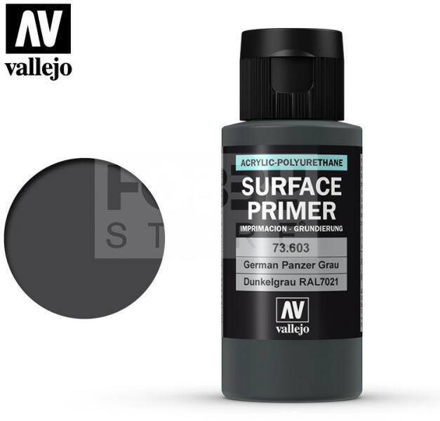 Vallejo Surface Primer Ger. Panzer Grey alapozófesték 60ml 73603V Mattra száradó akril alapozófesték. A Vallejo Surface Primerek számos árnyalatban kaphatók. Leggyakrabban makettek, modellek, miniatűr figurák, társasjáték figurák felületének előkészítésére használják a festési folyamatok megkezdése előtt. Az alapozó minden felületre felvihető, gyanta, műanyag, fehér