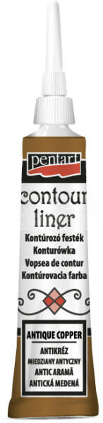 Pentart Kontúrozó festék metál antikréz 20 ml 10860 Univerzális, vízbázisú, sűrű festék, mely bármely felületen alkalmazható minták körvonalainak körberajzolására, kiemelésére vagy 3D díszítések készítésére. Üvegfestéshez is kiváló! Száradás után vízálló és mosogatógépben mosható. Metál színek. Termék neveKontúrozó festék, metál - Contour liner, me