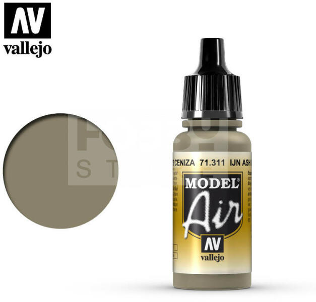 Vallejo Model Air IJN Ash Grey akrilfesték 71311V A Vallejo Model Air széria mattra száradó akrilfesték airbrush (szórópisztoly) használathoz lett kifejlesztve. A színválaszték a közelmúltban használt katonai színek legteljesebb választékát tartalmazza, beleértve az I. és a II. világháborút valamint a napjainkban használt színeket is. Mindegyik Model Air szín a meglévő