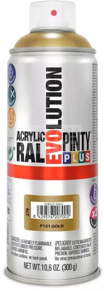 PINTYPLUS EVO AKRIL SPRAY P151 GOLD - ARANY P151 400ML PP279 Az PintyPlus Evolution sorozat kiváló minőségű, magas pigmenttartalommal rendelkező, ultra gyorsan száradó, oldószeres akril festék spray család. A palettán 70 különböző szín, 3 lakk, 6 metál spray és 5 fluoreszkáló spray található. Univerzálisan használható, szinte bármilyen felületen. Magas pigment minőség