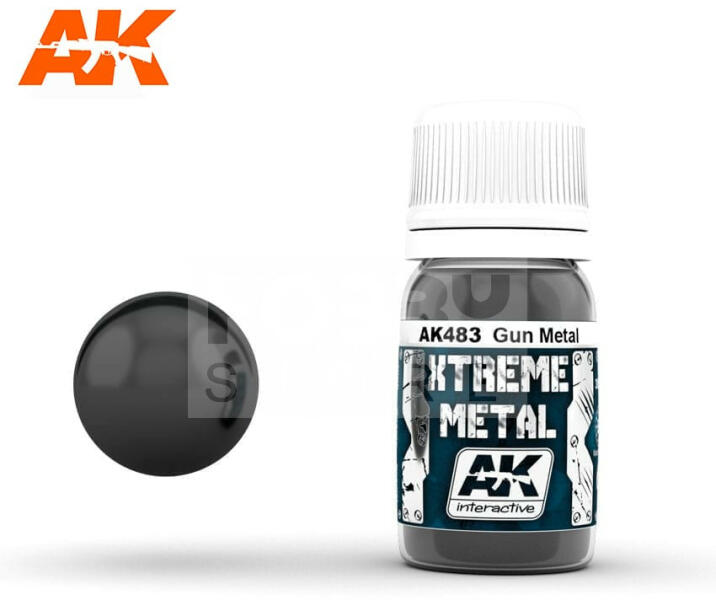 AK-Interactive XTREME METAL GUN METAL festék 30 ml AK483 Az AK-Interactive Xtreme Metal festékek az egyik legjobban fedő terülő metál festék széria a picon, mely közvetlenül fújáshoz (airbrush használathoz van hígítva). Az Xtreme metál széria három speciális alapozót és egy tisztító folyadékot is magába foglal. Az Xtreme metál festékek használatával valósághű fémes