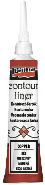 Pentart Kontúrozó festék metál réz 20 ml 10124 Univerzális, vízbázisú, sűrű festék, mely bármely felületen alkalmazható minták körvonalainak körberajzolására, kiemelésére vagy 3D díszítések készítésére. Üvegfestéshez is kiváló! Száradás után vízálló és mosogatógépben mosható. Metál színek. Termék neveKontúrozó festék, metál - Contour liner, metalli