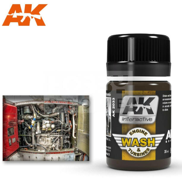 AK-Interactive AIRCRAFT ENGINE WASH 35 ml AK2033 . Enamel alapú általános bemosó-átmosó folyadék, mely nagyon sok színhez felhasználható a fémesektől elkezdve a kékeken és a sárgákon át a pirosakig. Alap technika a makettesek és wargamesek számára. Az Ak Interactive bemosók kiválóan alkalmasak a makettek, figurák árnyékolásra. Mivel rendkívül hígak így a legapróbb m