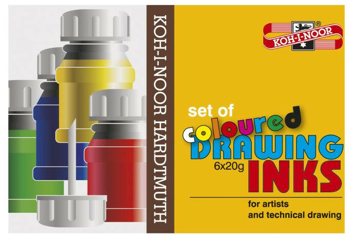 Tustinta csőtollhoz, 20 g-os kiszerelésben, 6 féle élénk színben, készletben: sárga, barna, piros, kék, zöld, fekete. A KOH-I-NOOR nagy múltú cseh cég, amely a művészet és az alkotás szenvedélyét tartja szem előtt termékeik gyártásánál, már 1790 óta. Minőségi művész- és iskolaszereket kínál, amelyek terén számos jelentős újítást és fejlesztést hoztak az é