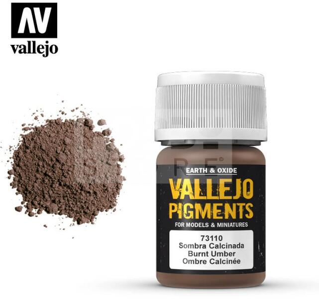 Vallejo Burnt Umber Pigment (pigmentpor) 35 ml 73110V Égett föld hatást tudunk elérni a használatával. A Vallejo Pigmentek kiváló fényállóságú extra finomra őrölt természetes ásványi és szintetikus termékek. Ezen tulajdonságaik megkönnyítik a maketteken és diorámákon való alkalmazásukat. A Vallejo pigmentek egy sor olyan színt tartalmaz amivel könnyedén jeleníthetj