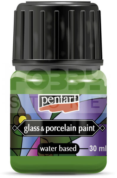 Pentart Üveg és porcelánfesték almazöld 30 ml 21341 Fényes, átlátszó vagy fedő, vízbázisú festék üveg-, porcelán- és fémfelületek díszítéséhez. A színek egymással jól keverhetők, világosításukhoz Pentart üveg&porcelánfesték médiumot használjunk. Ügyeljünk arra, hogy a díszítendő felület zsír- és pormentes legyen. Fényes, vízbázisú festék üveg-,