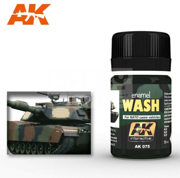 AK-Interactive WASH FOR NATO TANKS 35 ml AK075 Enamel alapú általános bemosó-átmosó folyadék, mely nagyon sok színhez felhasználható a fémesektől elkezdve a kékeken és a sárgákon át a pirosakig. Alap technika a makettesek és wargamesek számára. Az Ak Interactive bemosók kiválóan alkalmasak a makettek, figurák árnyékolásra. Mivel rendkívül hígak így a legapróbb mély
