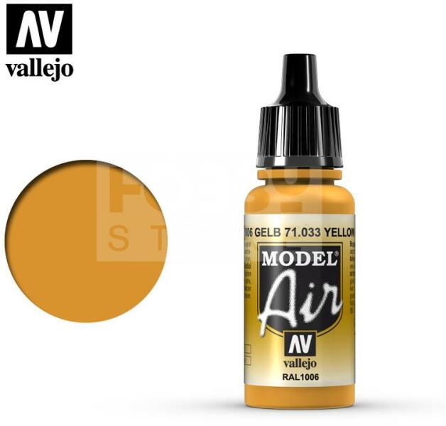 Vallejo Model Air Yellow Ochre akrilfesték 71033V A Vallejo Model Air széria mattra száradó akrilfesték airbrush (szórópisztoly) használathoz lett kifejlesztve. A színválaszték a közelmúltban használt katonai színek legteljesebb választékát tartalmazza, beleértve az I. és a II. világháborút valamint a napjainkban használt színeket is. Mindegyik Model Air szín a meglévő