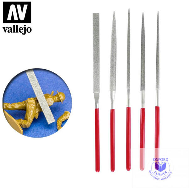 5 db-os, gyémántporos reszelő készlet modellezéshez. Set of 5 Diamond needle files, Vallejo