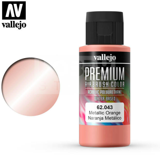 Vallejo Premium RC Colors Metallic Orange akrilfesték (60 ml) 62043V A Vallejo Premium RC sorozatot kifejezetten airbrush (szórópisztoly) használathoz lettek kifejlesztve. Tulajdonságának fő erőssége, hogy optimális tapadást biztosítsanak üvegszál, polietilén, polikarbonát, fém és lexan felületeken. A Premium RC sorozat speciális tartós pigmentekkel és egy új rendkívül ell