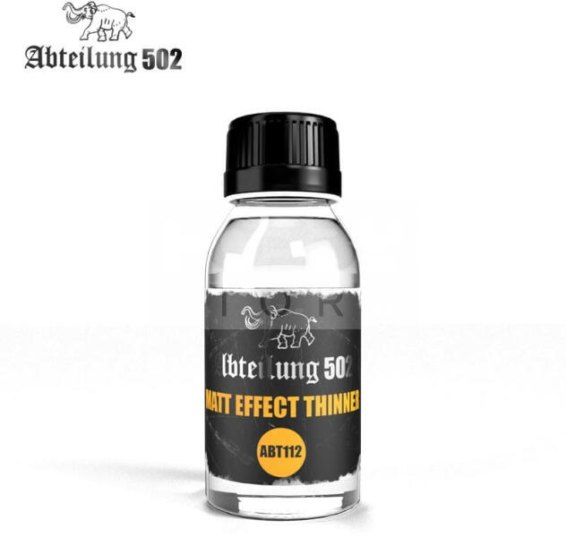 Abteilung502 - MATT EFFECT THINNER - Hígító 100ml ABT112 Abteilung502 olajfestékekhez hígító mattító adalékkal . Nem változtat az olajfestékek minőségi jellemzőin. Nem sárgul és repedezik. Univerzásil, a piacon található más olajfestékekkel is kompatibilis. Használható átmosáshoz, vagy filterezéshez egyaránt. Gasználat előtt alaposan felrázandó Kiszerelés: 100 ml G