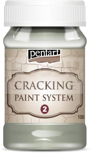 Pentart Repedőfesték zuzmózöld 100 ml 22693 Második komponense egy kétkomponensű, vízbázisú rendszernek repedezett, könnyen csiszolható, kopott felület kialakításához. Először az 1. komponenssel kenjük le vékony, egyenletes rétegben a felületet, majd ha megszáradt ecsettel vagy spatulával vigyük fel a repedő festéket. Száradás közben a festék megrepedezik, a repedés