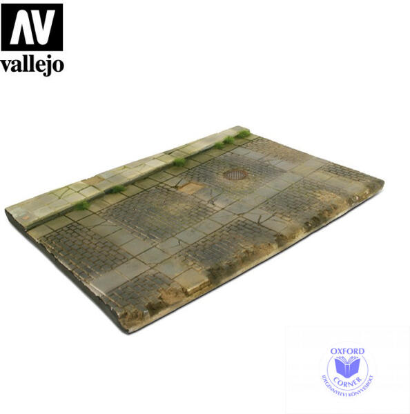Festetlen dioráma alap makettekhez, 1/35 méretarányban Cobblestone Road, Vallejo, 25×17 cm