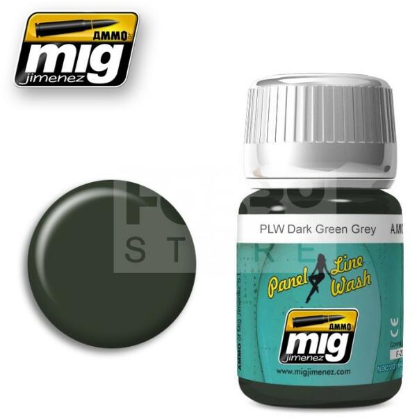 AMMO By Mig - PANEL LINE WASH DARK GREEN GREY - panelező bemosó folyadék 35ml - AMIG1608 Egyszerűen használható panelvonalak bemosásához használható folyadék makettezőknek. Az AMMO enamel alapú általános bemosó-átmosó, effect és filter folyadékok, melyek nagyon sokrétűen használhatóak. Alap technika a makettesek és wargamesek számára. Az AMMO By Mig effekt bemosók kivá