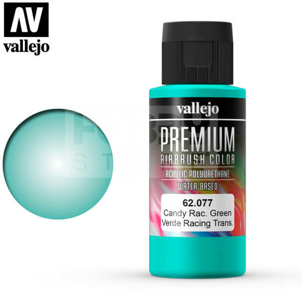 Vallejo Premium RC Colors Candy Racing Green akrilfesték (60 ml) 62077V A Vallejo Premium RC sorozatot kifejezetten airbrush (szórópisztoly) használathoz lettek kifejlesztve. Tulajdonságának fő erőssége, hogy optimális tapadást biztosítsanak üvegszál, polietilén, polikarbonát, fém és lexan felületeken. A Premium RC sorozat speciális tartós pigmentekkel és egy új rendkívül