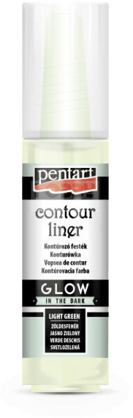 Pentart Kontúrozó festék GLOW zöldesfehér 20 ml 17500 Univerzális, vízbázisú, sűrű festék, mely bármely felületen alkalmazható minták körvonalainak körberajzolására, kiemelésére vagy 3D díszítések készítésére. Üvegfestéshez is kiváló! Száradás után vízálló és mosogatógépben mosható. Sötétben világító színek. Termék neveKontúrozó festék, sötétb