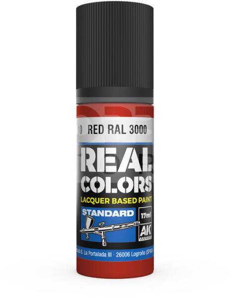 AK-Interactive Real Color - makett festék - Red RAL 3000 RC810 Magas miőségű akril lakk bázisú festék modellezéshez-makettezéshez. Használatával a lehető legpontosabb színeket érhetjük el méretarányos modelljeinken. Rendkívül jól használható festékszóróval. Az AK -Interactive Real Color festékek kiváló tapadással és fedőképességgel bírnak, gyorsan száradnak. Bár