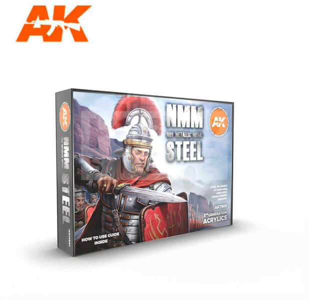 AK Interactive NON METALLIC METAL: STEEL festék szett AK11601 Tematikus festékszett 6 darab AK Interactive 3. generációs festékkel . Új formulával rendelkező magas fedőképességű festék mely kiválóan alkalmas festékszóróval és ecsettel való használatra egyaránt. Speciális összetevőinek köszönhetően nem tömődik el festékszórónk, és felrázás után azonnal használh